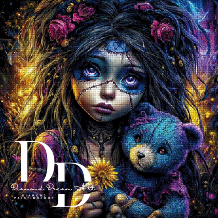 Diamond Painting Bild „Kelly und ihr Teddy“