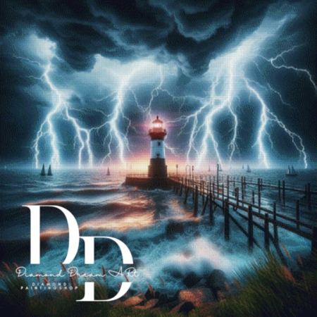 Diamond Painting Bild „Leuchtturm im Sturm“