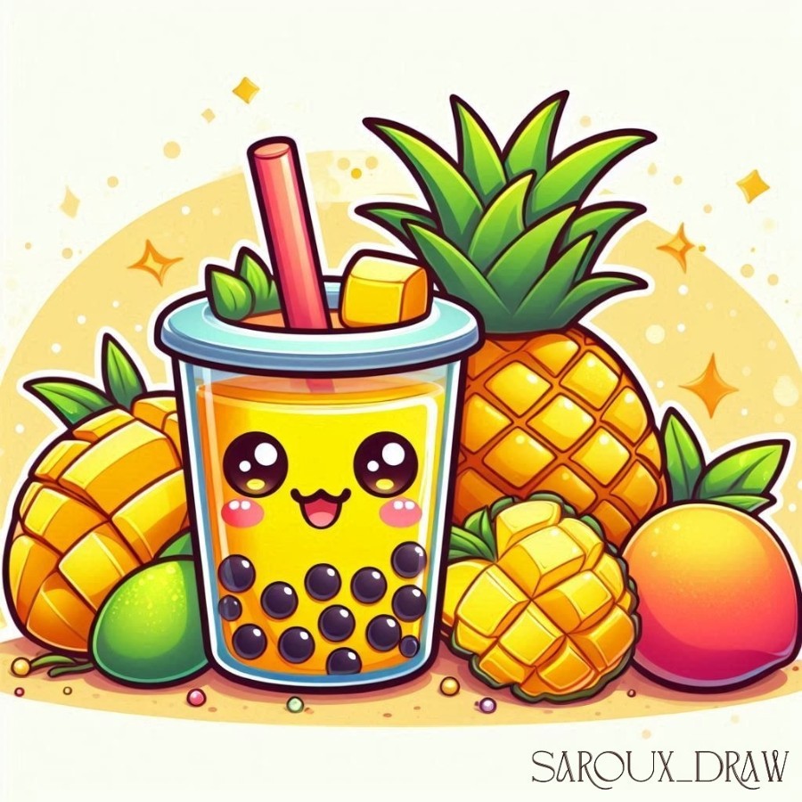Diamond Painting Bild „Pineapple Splash Blubble Tea“