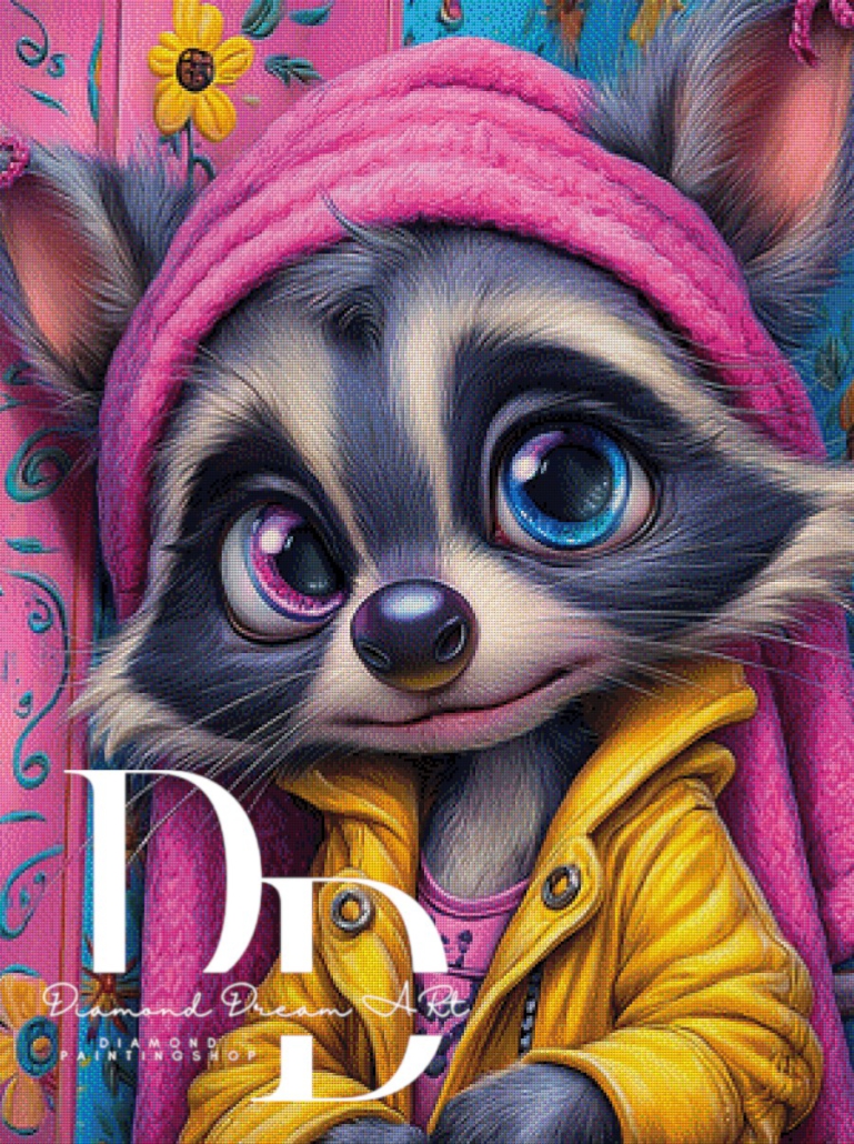 Diamond Painting Bild „pinky Waschbär“