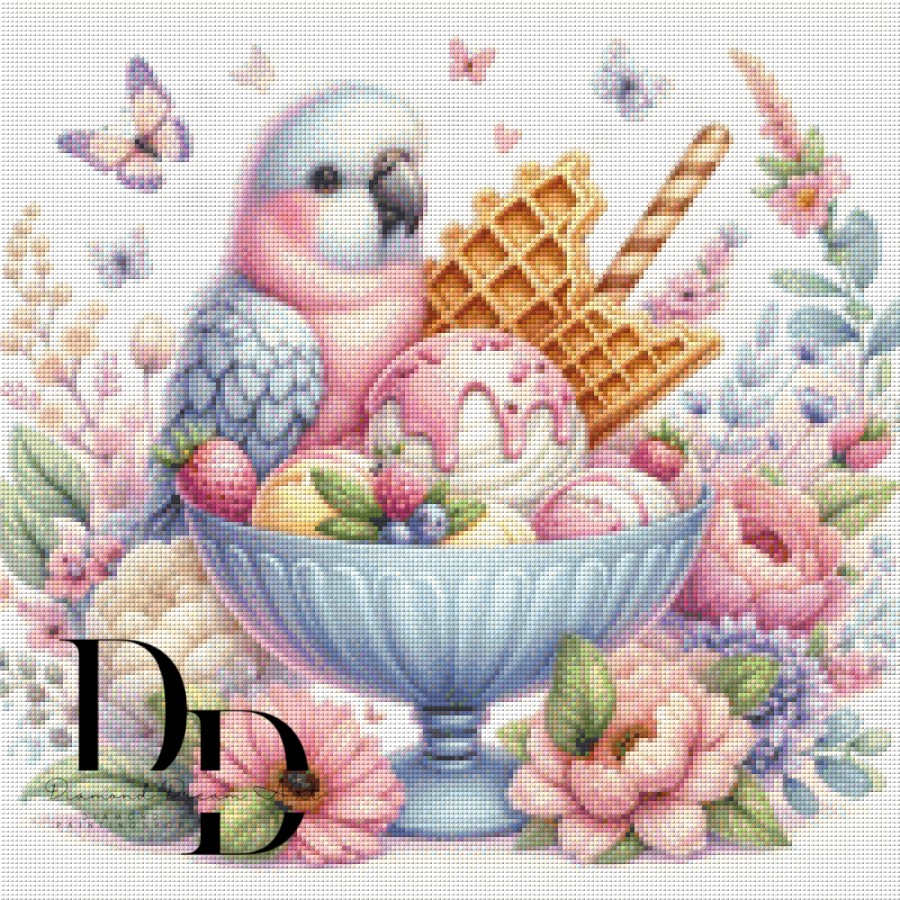Diamond Painting Bild „Vogel im Eisbecher“